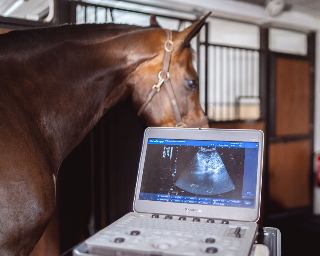 Ultraäänilaitteella voidaan tutkia esimerkiksi hevosen jänteitä ja lihaksia ontumatutkimuksen yhteydessä. Lisäksi ultraäänitutkimuksella saadaan kuvannettua hevosen selän ja lantion alue, jota ei voida hevosen suuren koon takia kuvata röntgenlaitteella. Selän alueella on paljon pehmyskudos- ja luurakenteita, joiden ongelmat voidaan diagnosoida ultraäänilaitteen avulla.